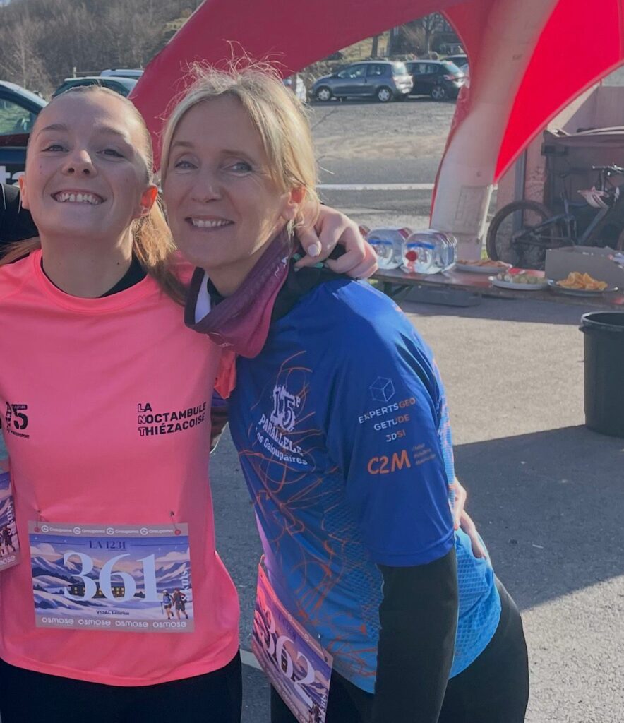 – Sur le 9 km (300 D+), Sandrine a relevé le défi pour sa première expérience de trail, terminant 75ème sur 88, accompagnée de sa fille Laurine. Belle aventure en famille 👩👧!